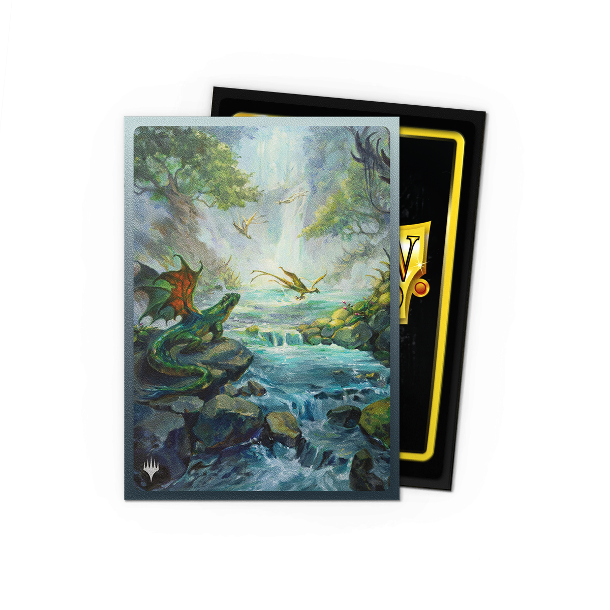 The fetch lands are among the most iconic Magic: The Gathering™ cards ever made. Now, as part of the Landfall Series, you can get the jaw-dropping showcase version of Misty Rainforest – with dragons! – as Dragon Shield Matte Dual Art Sleeves. The Landfall Series celebrates lands, the gorgeous vistas that serve as the very foundation of Magic: The Gathering. Without lands, no powerful spells would be cast and mighty creatures could not be summoned. The Landfall Series lets you draw the power to protect your cards from the very lands themselves. Matte Dual sleeves are a gorgeous twist on the fan-favorite Matte sleeves. The black interior perfectly frames your cards for a stylish presentation complementing the stunning art on the back. The artwork is printed directly onto the sleeve, meaning the artwork is as high-quality, durable and peel-free as the sleeves they are forged onto. The sleeves come in a reusable cardboard box containing 100 standard size sleeves for trading cards measuring up to 63x88 mm's (2½"x3½"). Great for TCGs like Magic: The Gathering™.
