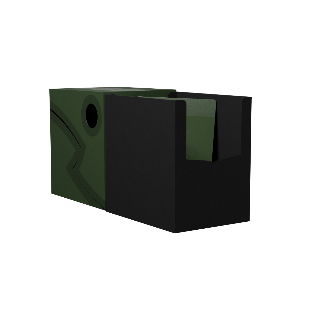 The perfect commander deck box! The Dragon Shield Double Shell is a sturdy deck box with two layers of protection all the way around. The lid wraps around the box for a secure closure or can be set to stay open for easy access to cards. Cube Shells will fit inside. The Double Shell fits inside large Nest boxes and Magic Carpets. Each Double Shell has a writing field on top for personalization and comes with a divider.